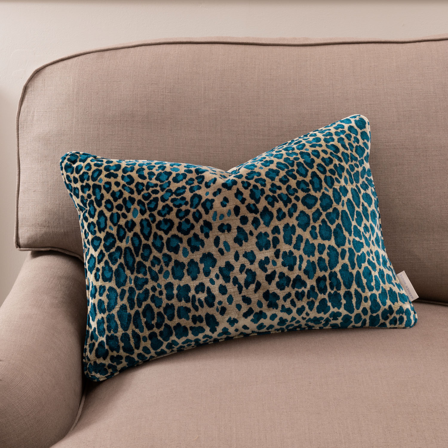 A bold woven cushion featuring an all-over texture inspired by the fur of the majestic leopard. Animal prints have been in many factories print books since the late 18th century, when ladies would adorn such patterns upon their shoes. Today our furnishing cloth has many more uses and is woven in four bold colours.
