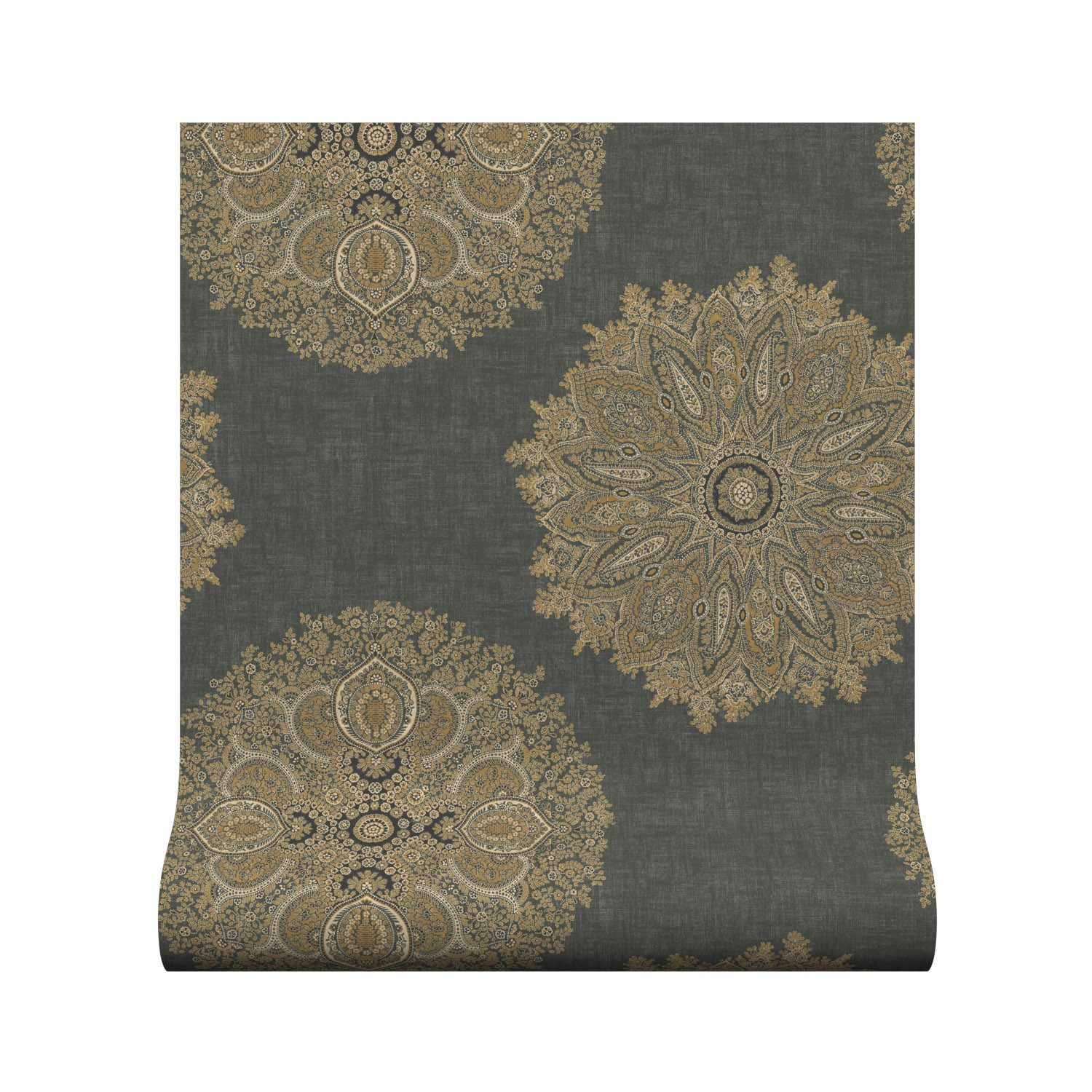This majestic design of floral circles and matching border seeks its inspiration from an early 19th century Paisley shawl which would have graced the arms of many a notable Victorian lady's crinoline. Now reimagined for a modern interior setting, this bold motif wallpaper is printed in four impressive colourways.